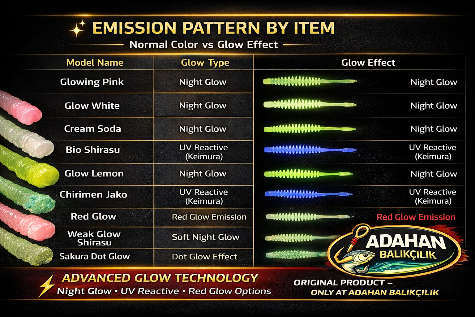 Yeni Nesil Renk Skalası: Klasikleşmiş renklerin yanı sıra Japonya'nın en çok tercih edilen; 'Cream Soda', 'Night Orange' ve 'Chicago Black' gibi özel renk seçenekleri şimdi Adahan Balıkçılık'ta.