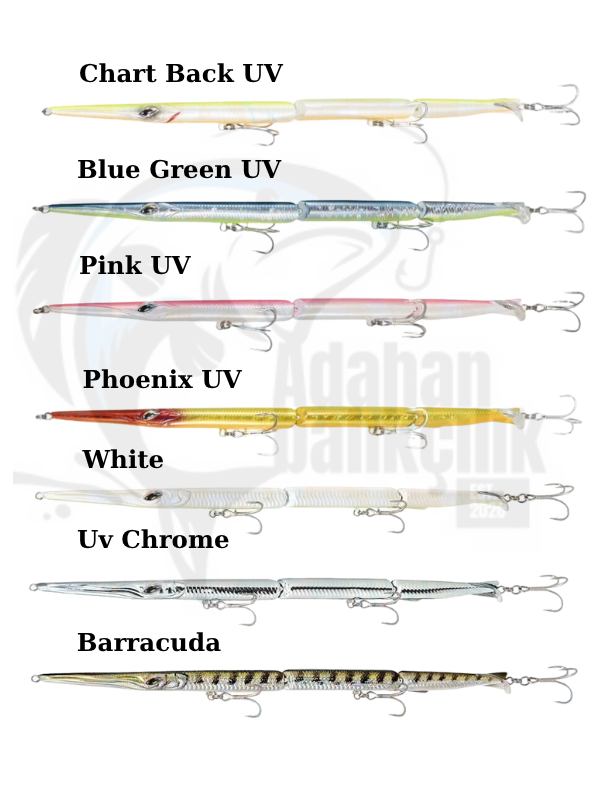 Büyük avcıların peşindeyseniz, doğru sahteyi buldunuz. Ryuji Predator, denizin en çok aranan yemi olan zargana balığını sadece görüntüsüyle değil, su içindeki 3 bölümlü (jointed) hareketli yapısıyla da birebir taklit eder. Baraküda, lüfer, kofana, levrek ve kuzu balığı gibi dişli avcılar için özel olarak tasarlanmıştır.