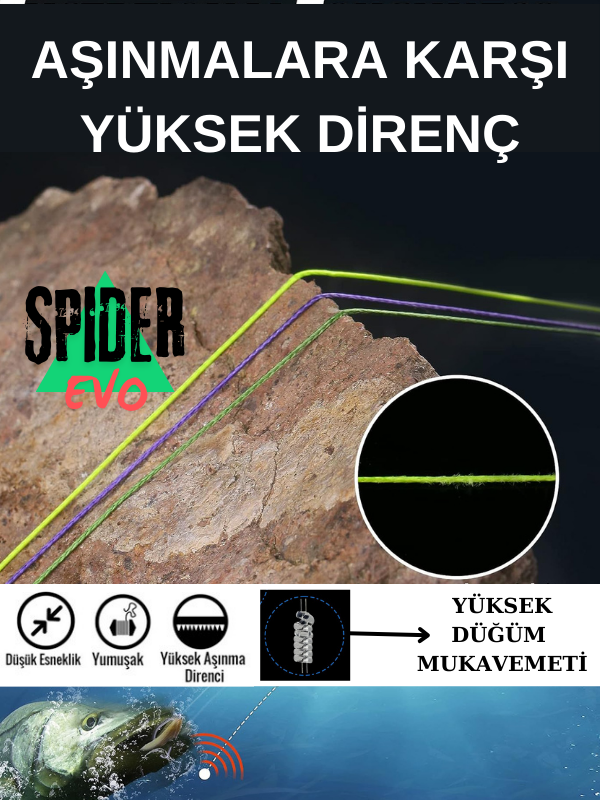 Japon teknolojisi ve yapay zekanın birleşimi ile üretilen SPIDER EVO Karşınızda. özellikle uzak atışlarda ve yüksek mukavemet i için üretilmiş olan üst düzey iplerdir. OPTIMUS PRO'YA Özgü olan üretim tekniği sayesinde emsal örgü misinalarına göre %25 daha uzak atışı, çeker değerine, ve aşınma direncine sahiptir. Görünümü sayesinde her türlü avcı balıkların misinadan ürkme problemini ortadan kaldırmaktadır. Kendine has üretimi sayesinde ipeksi bir dokunuşa sahiptir. Bu sayede misinanın makina ve kamış halkarından geçişinde aşınmaları önlemektedir. 8 Örgü üretim tekniği sayesinde daha fazla çeker degerine sahiptir. SPIDER EVO OPTIMUS PRO kalitesiyle sizelere sorunsuz ve uzun bir süre hizmet verecektir.